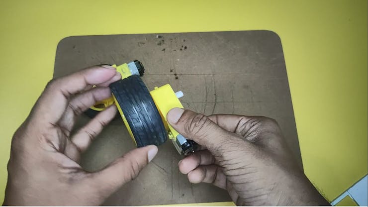 As you can see in the video, I cut pieces to mount two motors and wheels both inside the board area. And then glued them.