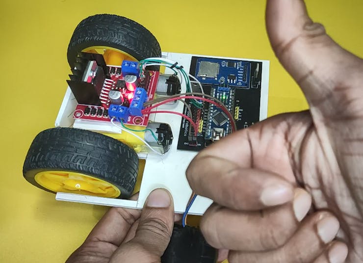 I used 7.4V battery for the motors, that connects to motor driver input and Arduino VIN and Ground Pin. Common ground connection is needed.